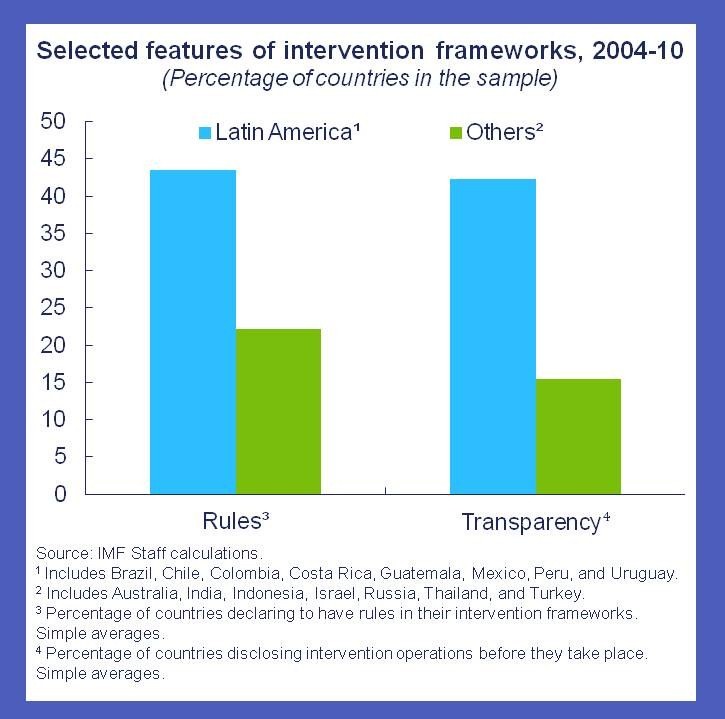 In the latest Regional Economic Outlook: Western Hemisphere we took a fresh look at this issue, examining intervention practices and effectiveness for a group of economies in Latin America and other regions during 2004-10. In particular, we sought to answer the following questions: