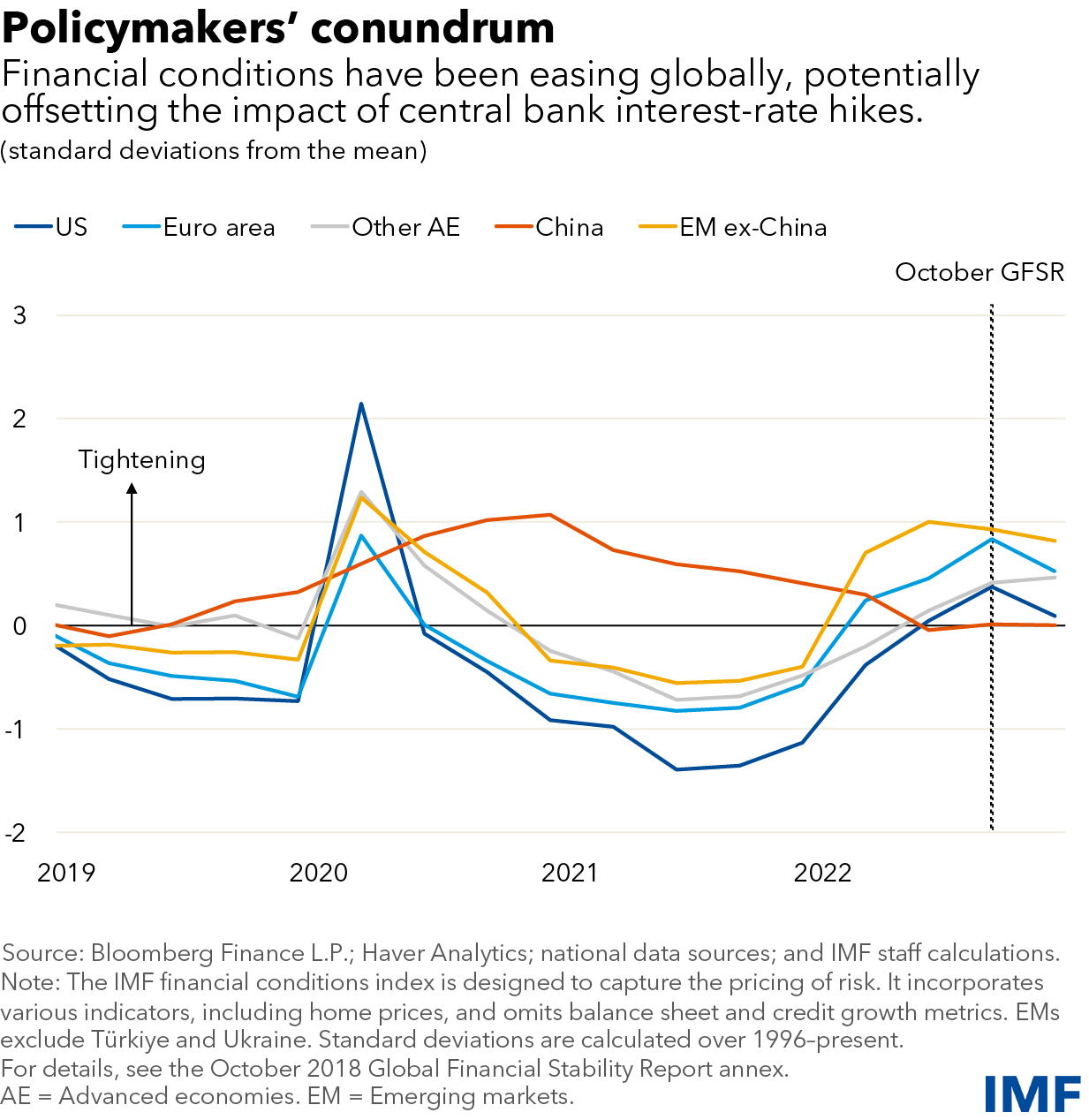 Growing expectations for lower interest rates and only a shallow economic slowdown have fueled a significant easing in financial conditions in recent months—despite central banks continuing to raise rates. Markets have reflected this relatively benign picture: stock markets have rallied, and credit spreads narrowed considerably.