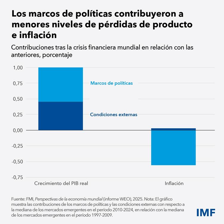 —Este blog se basa en el capítulo 2 de la edición de octubre de 2025 de Perspectivas de la economía mundial: “La resiliencia de los mercados emergentes: ¿buena suerte o buenas políticas?”, y el capítulo 3 del Informe sobre la estabilidad financiera mundial: “Shocks globales, mercados locales: el panorama cambiante de la deuda soberana en los mercados emergentes”.